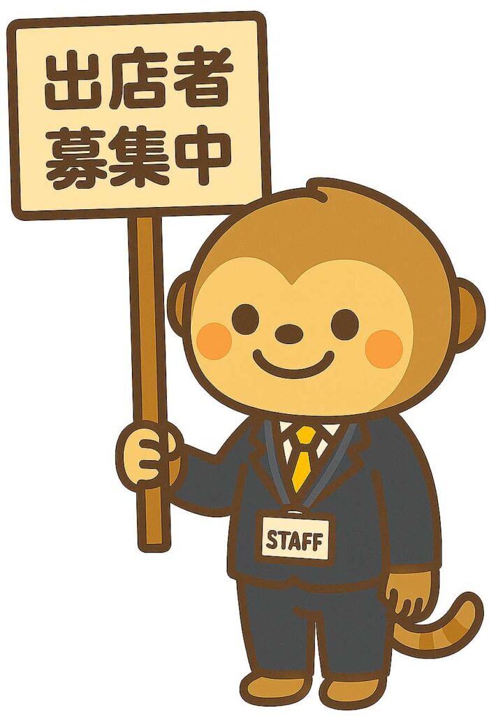 イベント出店者募集登録 2025.07.102025.07.21 主催するイベントへの出店者募集告知を登録します イベント出店者募集は主催者アカウントの方のみ行えます。 必要な方は主催者アカウントの申請を行ってください。 ログインユーザー:ログインしていません